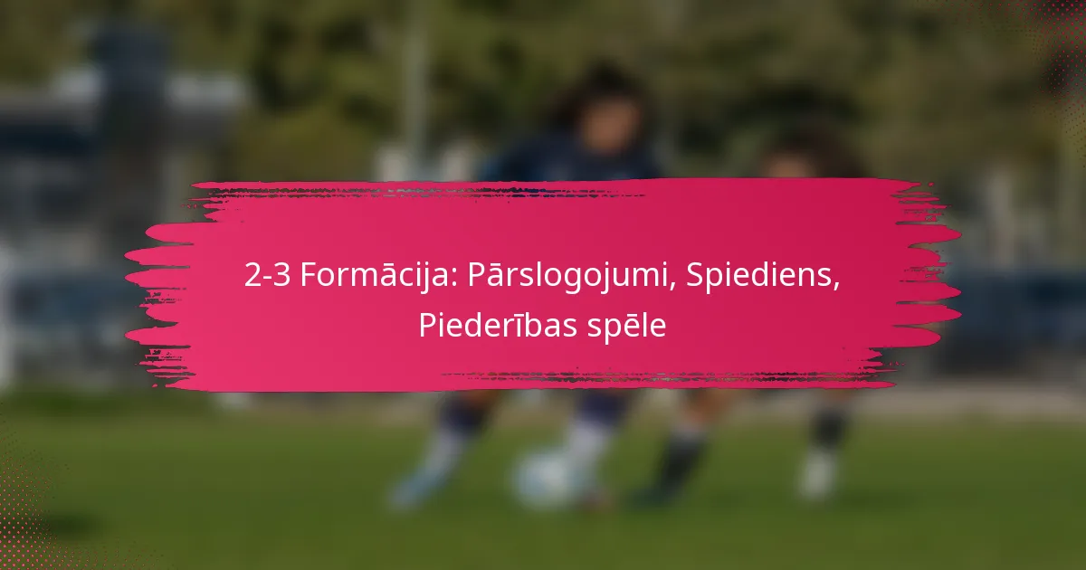 2-3 formācija futbolā ir taktiska izkārtojums, kurā ir divi aizsargi un trīs pussargi, kas paredzēts, lai radītu pārspēku viduslaikā, vienlaikus uzlabojot presingu un bumbas kontrolēšanu. Stratēģiski pozicionējot spēlētājus, šis izkārtojums ļauj komandām efektīvi kontrolēt bumbu un veikt ātras pārejas, padarot to īpaši izdevīgu tiem, kas prioritizē bumbas saglabāšanu un augsta spiediena izdarīšanu uz pretiniekiem.
