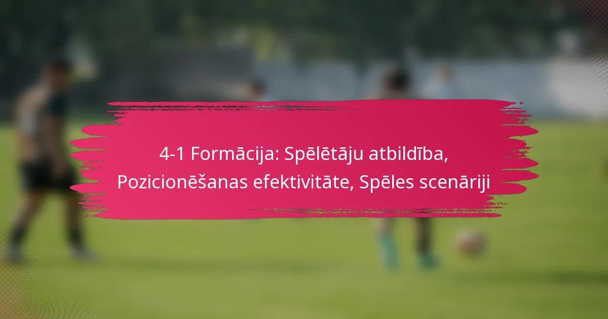 4-1 formācija ir ļoti efektīva dažādās spēļu situācijās, nodrošinot stabilu aizsardzības struktūru, vienlaikus ļaujot uzbrukuma elastību. Šī formācija parasti ietver četrus aizsargus, vienu defensīvo pussargu un piecus spēlētājus uz uzlabotām pozīcijām, kas var pielāgoties dažādām spēles situācijām.